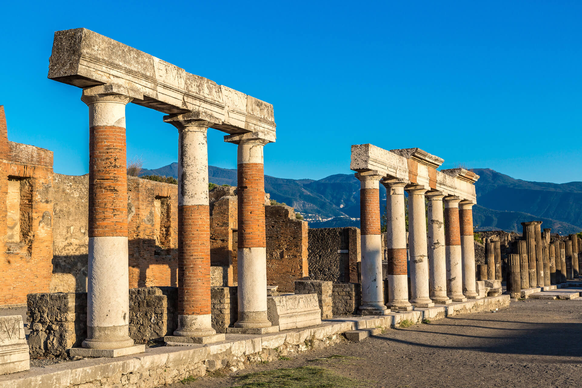 Durante il secondo giorno di viaggio avremo accesso al sito, Patrimonio dell'umanità UNESCO, degli scavi archeologici di Pompei, i resti dell’antica città seppellita sotto una coltre di ceneri e lapilli durante l'eruzione del Vesuvio del 79 d.C. insieme ad Ercolano, Stabia ed Oplonti. Una delle migliori testimonianze della vita quotidiana ai tempi di Roma tra ville, case, anfiteatri e lo straordinario Foro di Pompei, finemente decorati da affreschi, mosaici e statue che ci permetteranno di comprendere gli usi, i costumi, le abitudini e l'arte della vita di oltre due millenni fa.