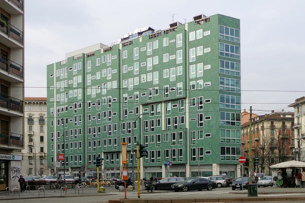 L'itinerario si conclude con un nuovo progetto di edificio per uffici risalente agli anni Sessanta, palazzo Montedoria. Il complesso si articola in un gioco di sporgenze e rientranze che dona ritmo all'edificio, le cui facciate si caratterizzano per il sorprendente rivestimento ceramico di colore verde e il ricorso a vetrate a tutta altezza, che suggeriscono una sensazione di leggerezza.