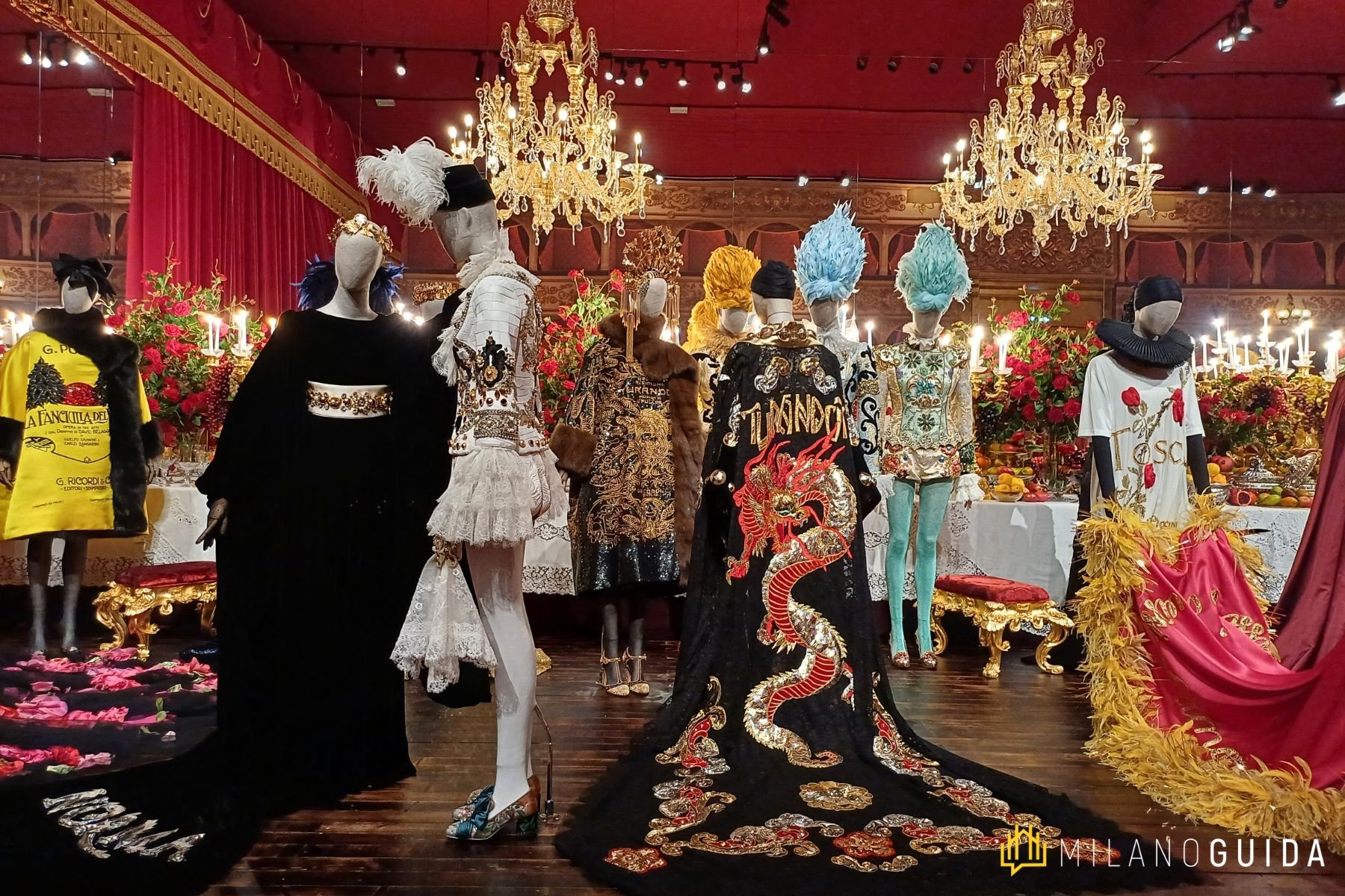 A concludere il percorso troveremo gli abiti da scena realizzati per il Teatro alla Scala e un omaggio intimo e personale alla città di Milano, capitale della moda che ha sancito la fama mondiale di Dolce e Gabbana. In mostra, non solo abiti ma anche accessori di vario genere e oggetti di uso comune inseriti in vere e proprie installazioni, pensate appositamente per le magnifiche sale di Palazzo Reale, che contestualizzano i materiali esposti enfatizzandone il valore e la preziosità.
