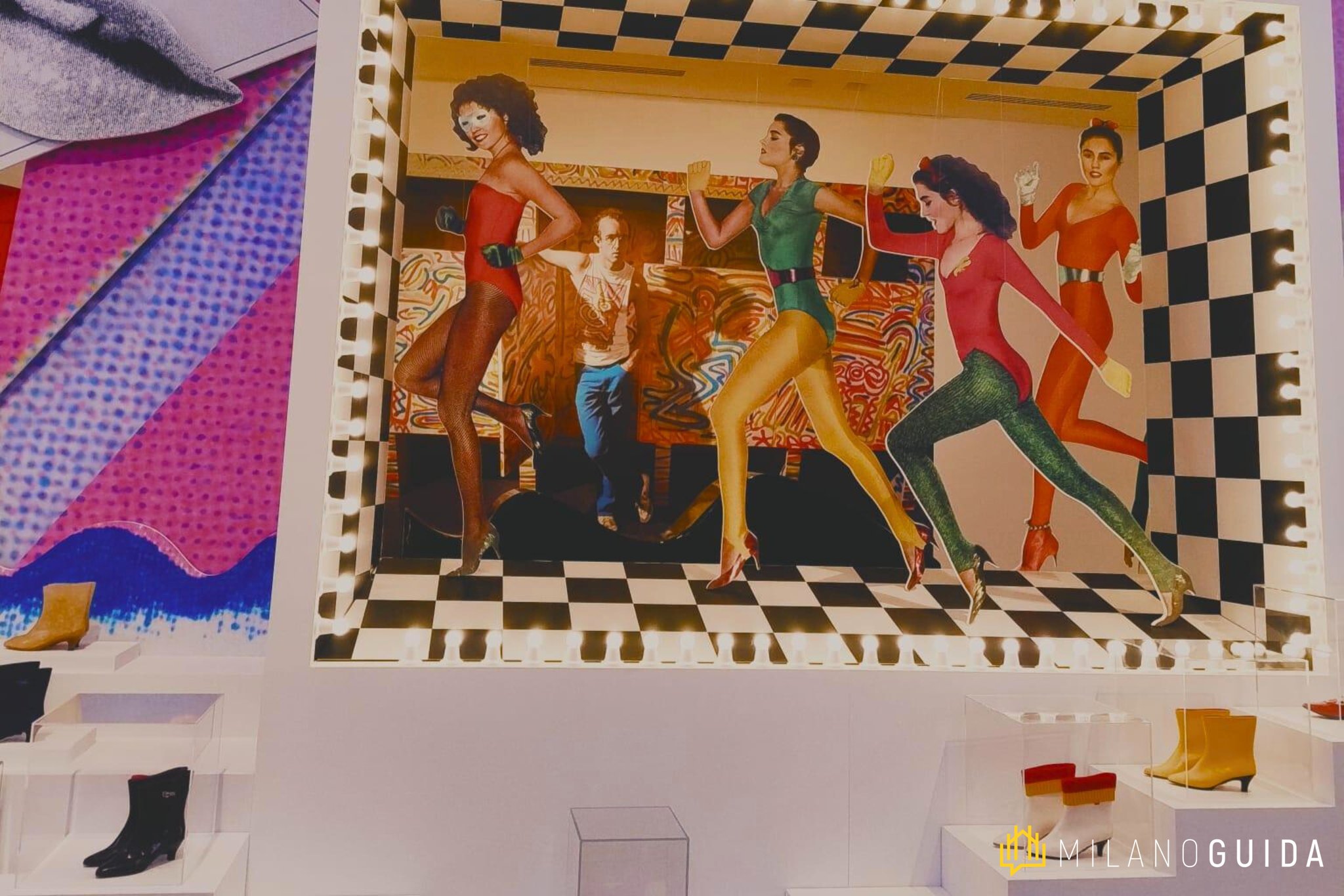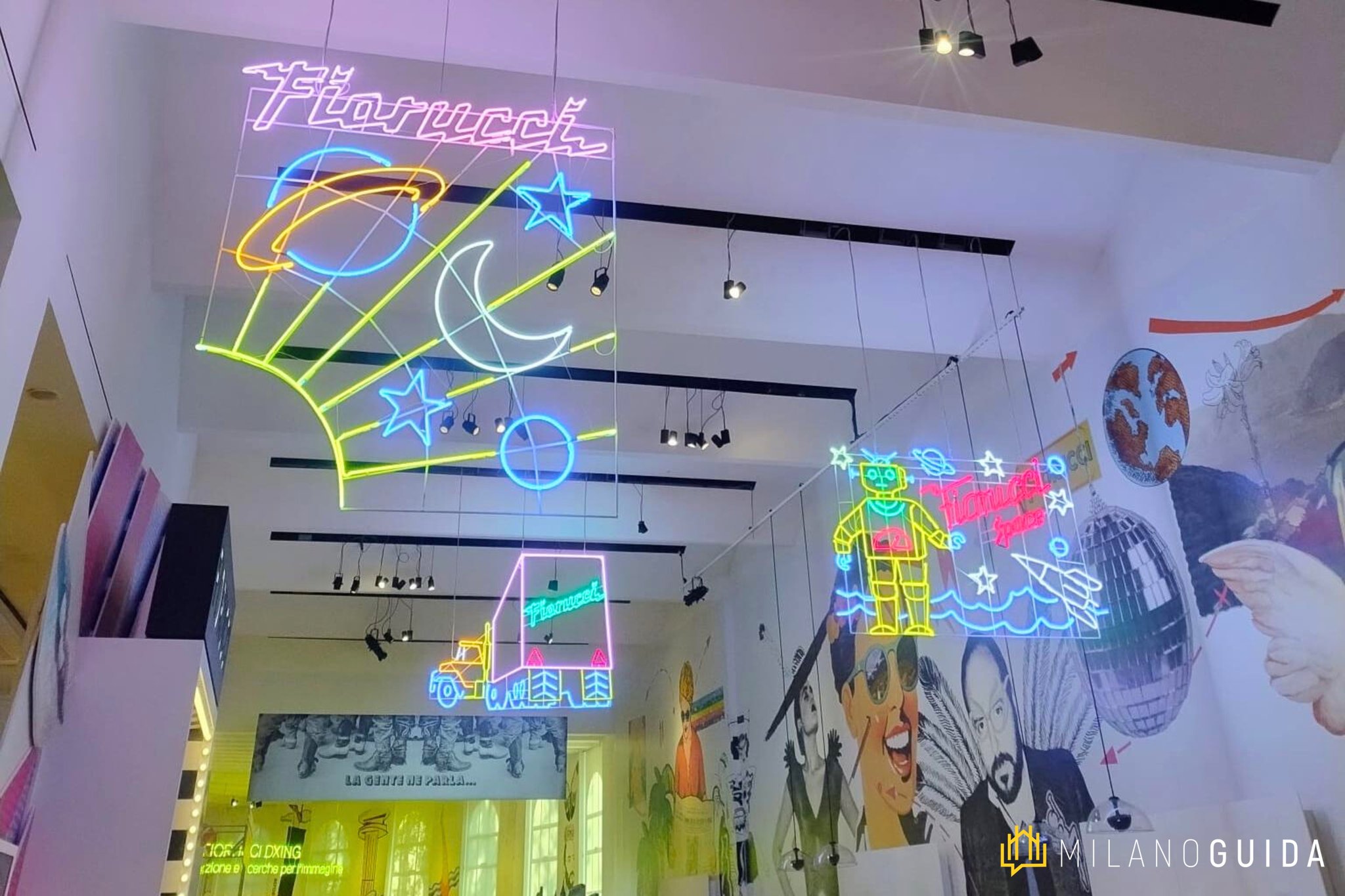 Attraverso registrazioni inedite, la voce narrante di Fiorucci, accompagnata da quelle di altri personaggi che hanno segnato la sua vita, ci guiderà in un percorso colorato ed energico tra installazioni, opere d’arte, fotografie, abiti, accessori e documenti provenienti dal suo archivio personale. Fondamentali i suoi rapporti con personaggi di spicco della pop art, dalla collaborazione con Keith Harring, che decorò le pareti del primo e più famoso negozio in Galleria Passerella, poco distante dal Duomo di Milano e dalla Galleria Vittorio Emanuele II, fino all'amicizia con Andy Warhol, che decise di lanciare la sua rivista Interview a New York, proprio nello store di Fiorucci.