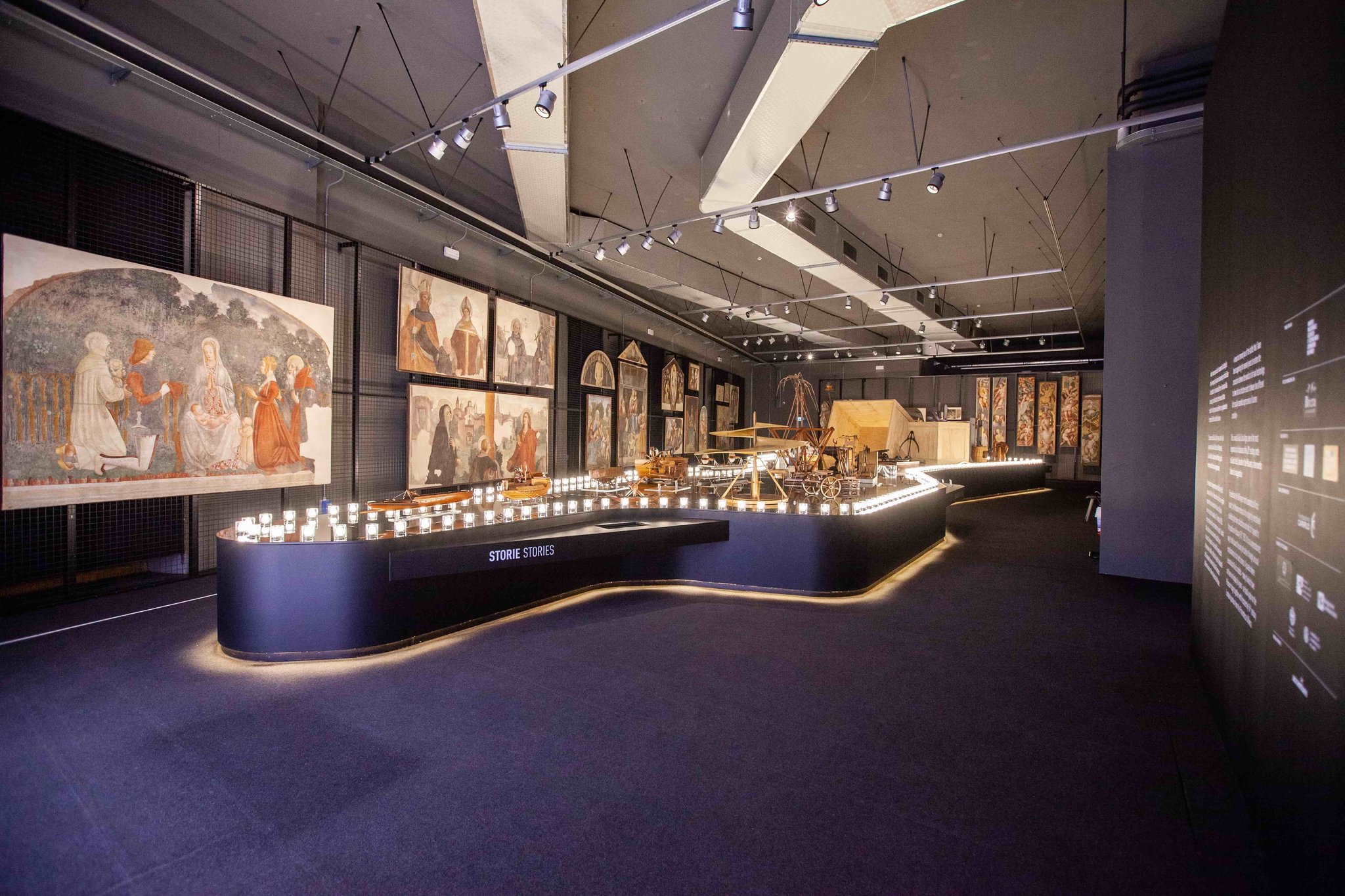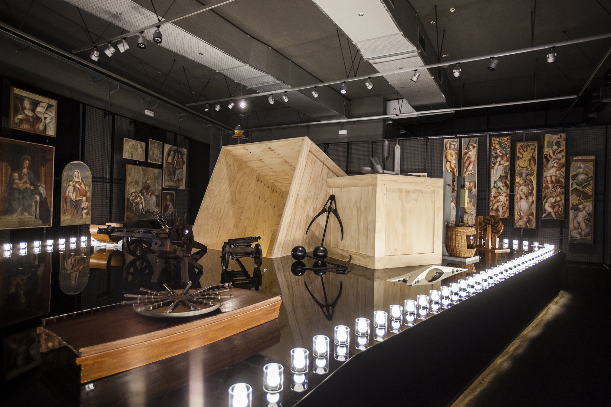 Modelli di macchine di diverso tipo, come il celebre aliante, sono esposti accanto a modelli di architetture militari e civili in gesso e terracotta, recentemente restaurati e riproposti al pubblico dopo molto tempo, a testimoniare l'ampiezza delle ricerche di Leonardo, dall'idraulica alla balistica, dal tema del volo a quello della subacquea e a ripercorrere gli ambiti della sue sperimentazioni durante i suoi soggiorni milanesi, quando oltre a lasciare in città alcuni capolavori pittori quali, su tutti, il Cenacolo, contribuì intervenendo nel dibattito sul tiburio del Duomo e studiando il sistema delle chiuse dei Navigli.